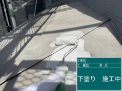 高圧洗浄で清潔になった屋根に、まずは下塗り(プライマー)を塗ります。