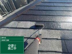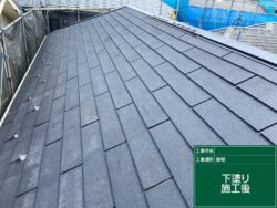 屋根材と塗料を密着させるための工程です。