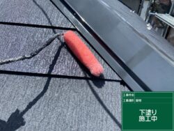 屋根材と塗料を密着させるための工程です。